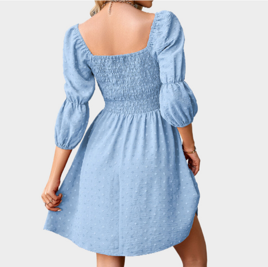 A Line Dresses Puff Sleeve Square Neck Blue Dress