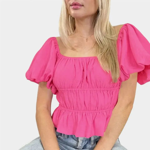 Pink Crop Top with Puffy Sleeves | $29.90 USD