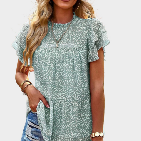 Green Floral Blouse with Ruffle Sleeve | $29.90 USD