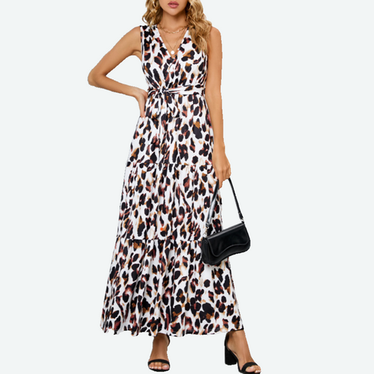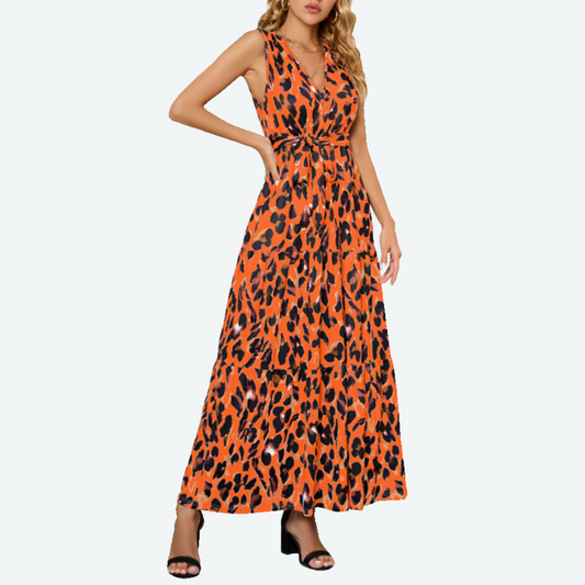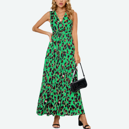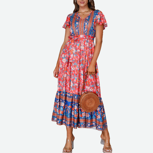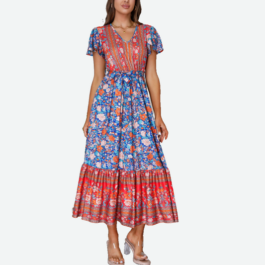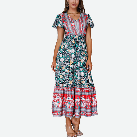 Women's Fit and Flare Dress | V neck Short Sleeves Maxi Dress