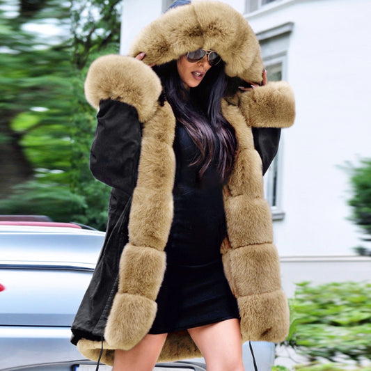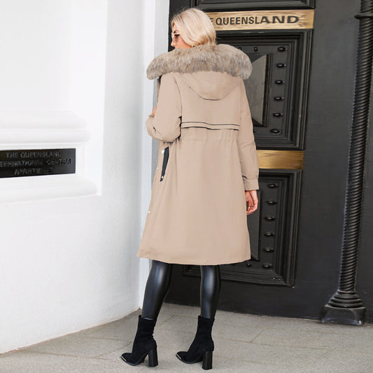 Women's 2-in-1 Winter Coat with Inner Warm Fleece Coat Fur Collar Long Padding Jacket