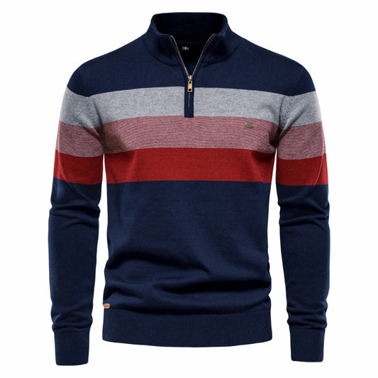 Men's Knitted Sweater Diamond Pattern Pullover Color Block