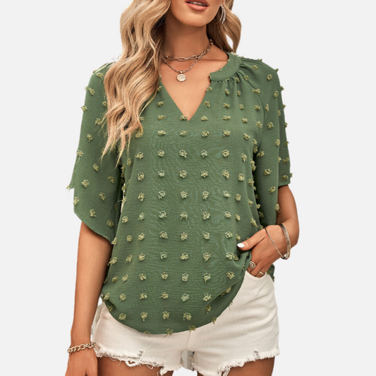Green Blouse Short Sleeve V neck
