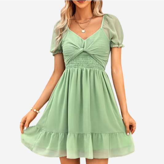 Green Holiday Dresses Puffed Short Sleeve