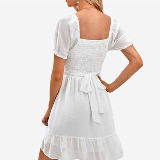 White Bridesmaid Dresses Puffed Short Sleeve