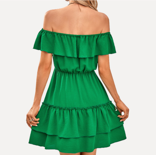 Ruffled Off The Shoulder Dress in Green