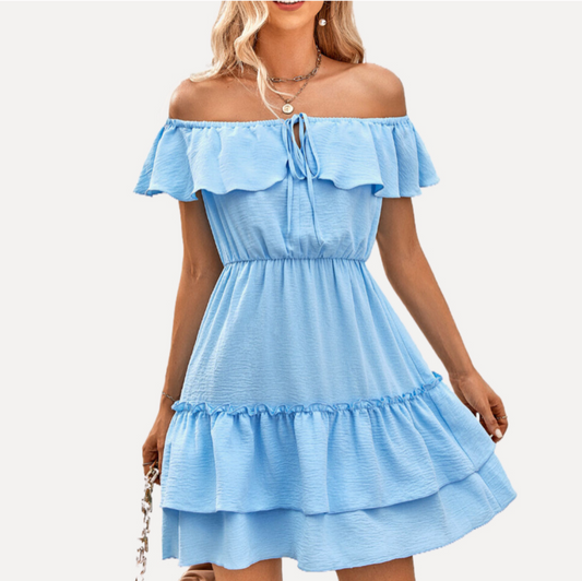 Blue Off The Shoulder Dress with Ruffle