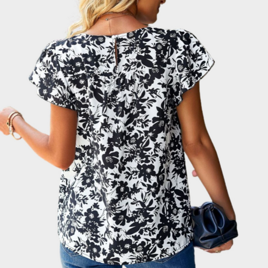 Floral Printed Black Blouse Short Sleeve