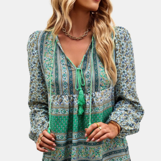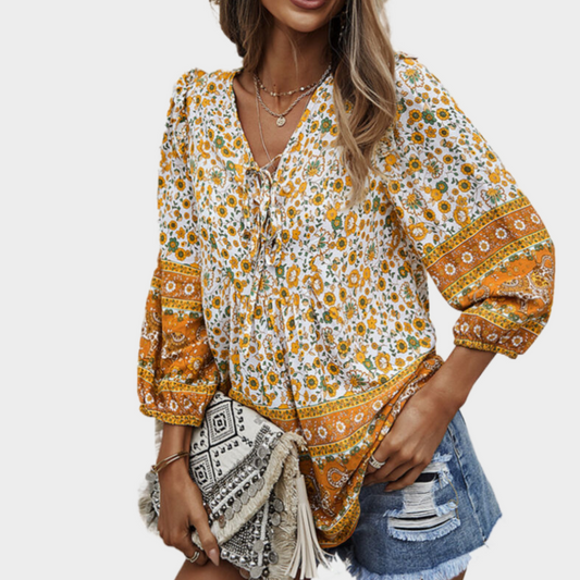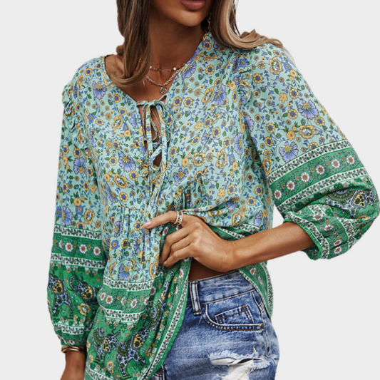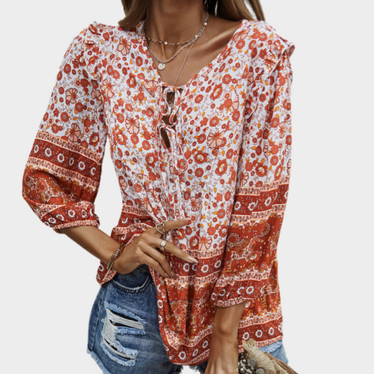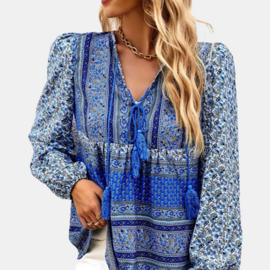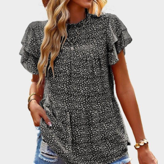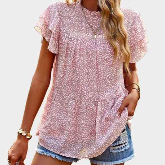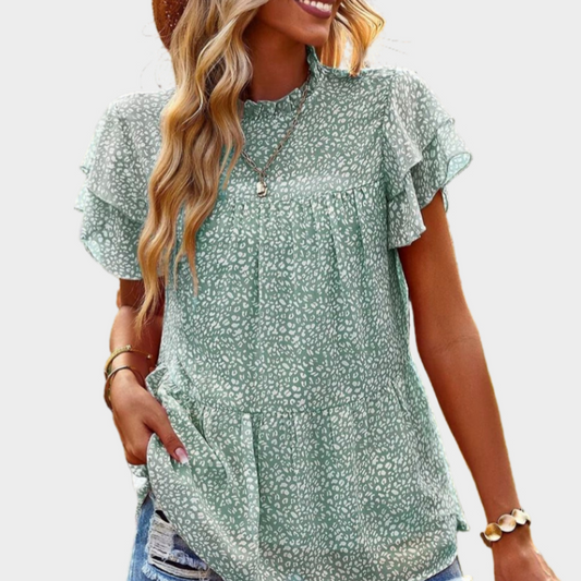 Floral Mock Neck Blouse with Ruffle Sleeve