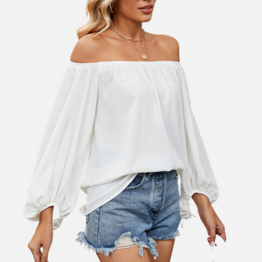 White Off Shoulder Blouse Chiffon
