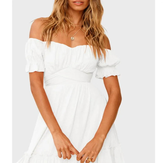 White Off The Shoulder Dress Ruffle Wedding Dress