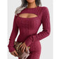 Cable Knit Red Sweater Dress Bust Cut out Sexy Dress Bodycorn Fit