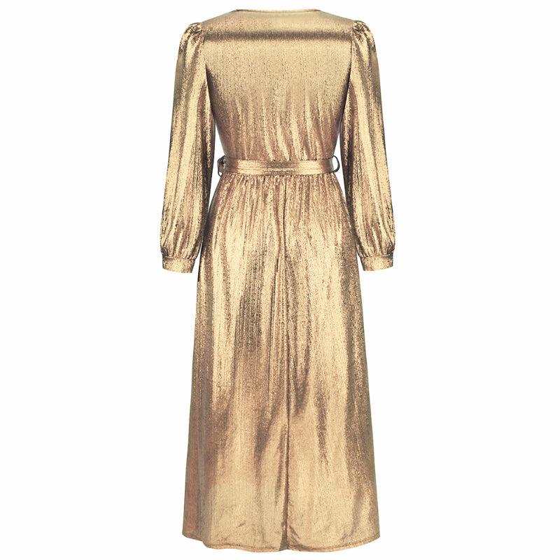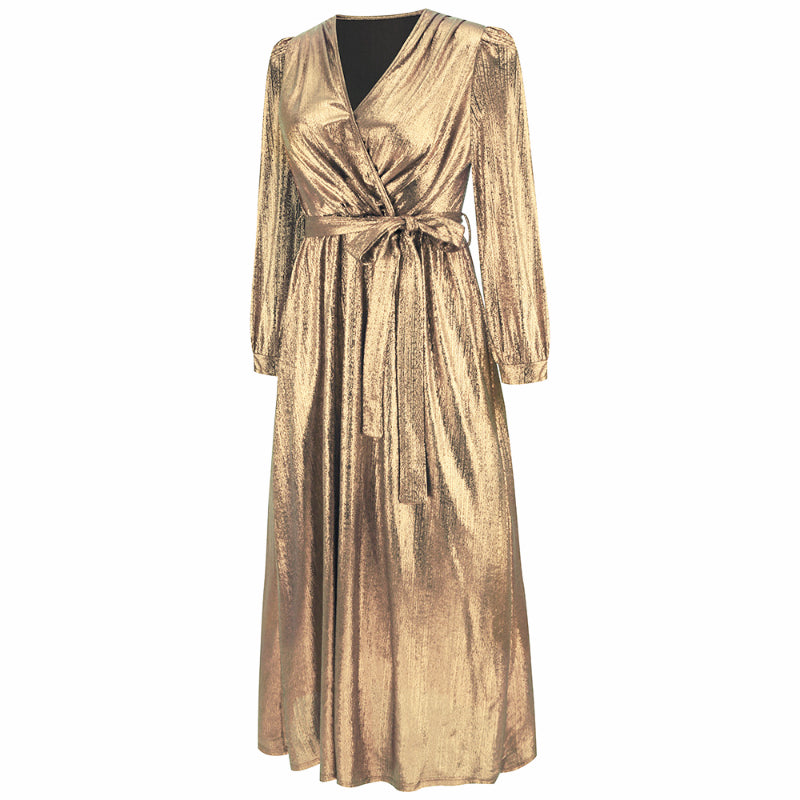 Women's Sparkly Metallic Dress Xmas Party Dress V-neck Prom Dress in Golden Shiny