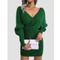 Green Bodycon Sweater Dress V neck Batwing Sleeve Sexy Dress