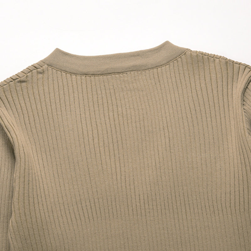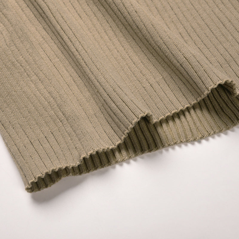Kakhi Ribbed Knit Dress V Neck Button Down Elegant Midi Dress