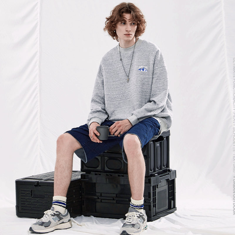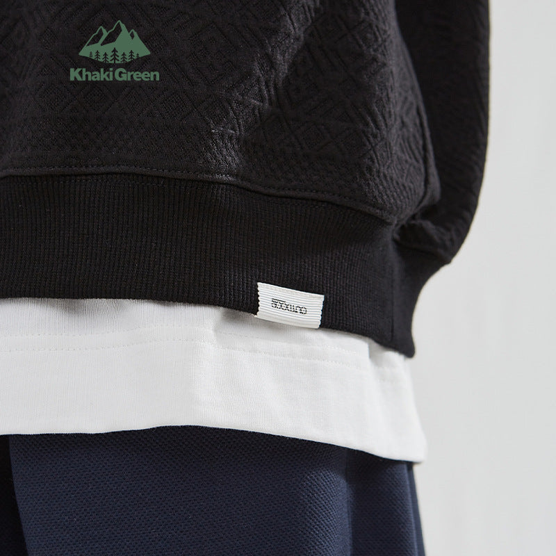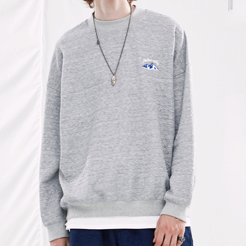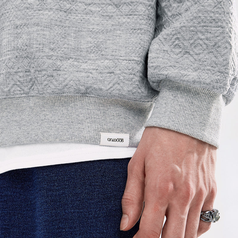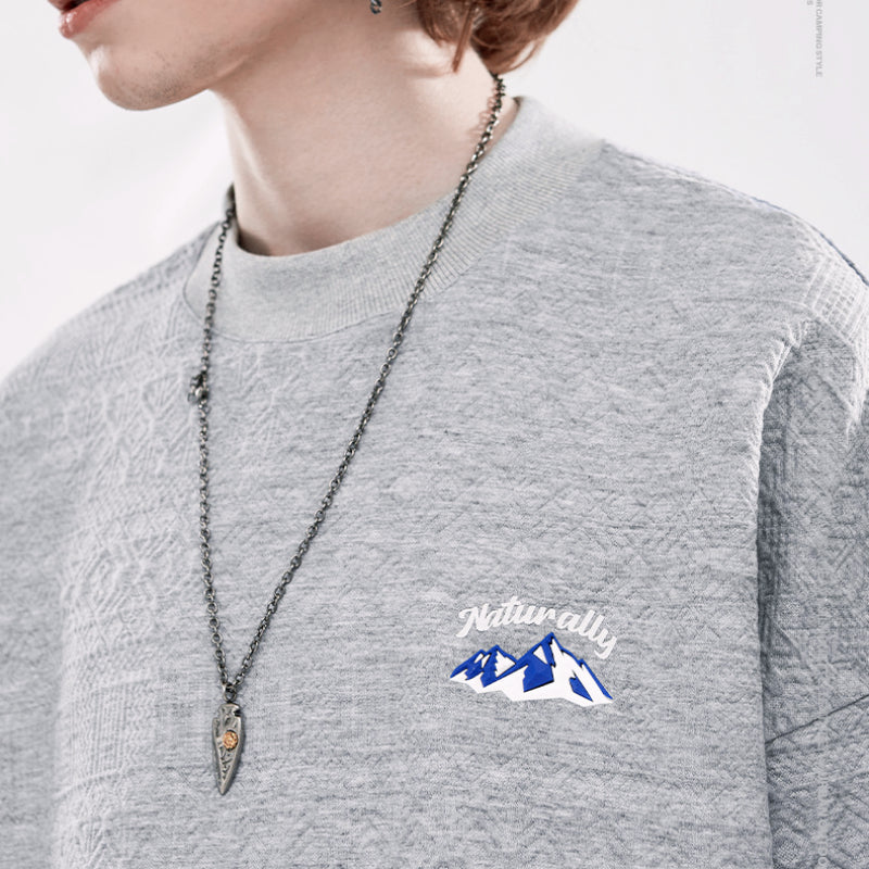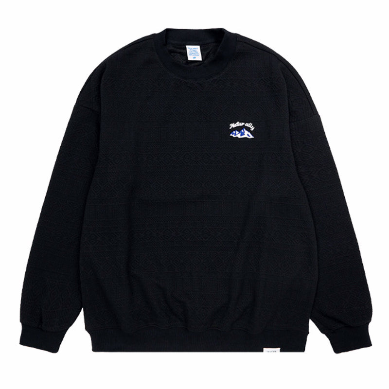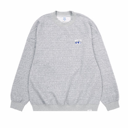 The Men's sweater is a classic crewneck style knit featuring jacquard fabric, regular fit, a graphic embroider on the chest, detailed with ribbed trims and a subtle woven Square Label on the hem.