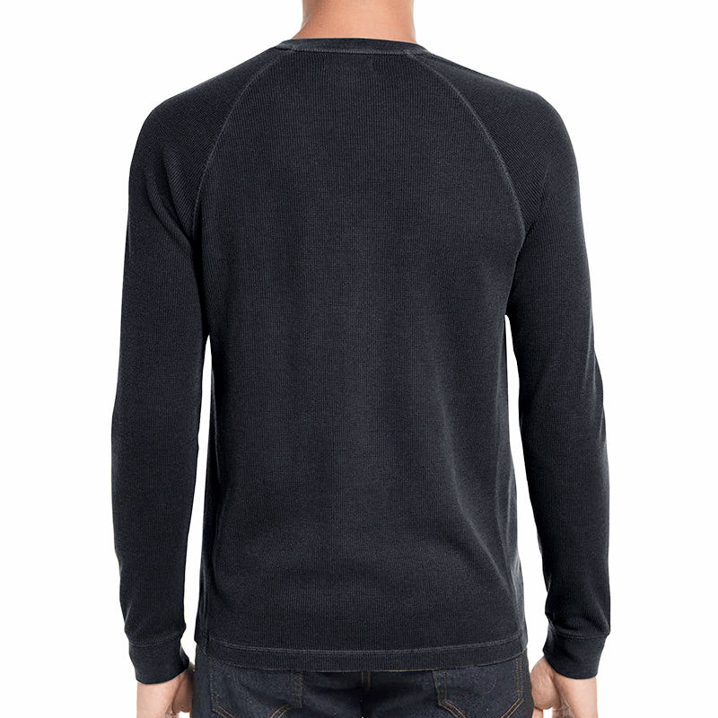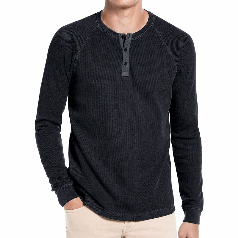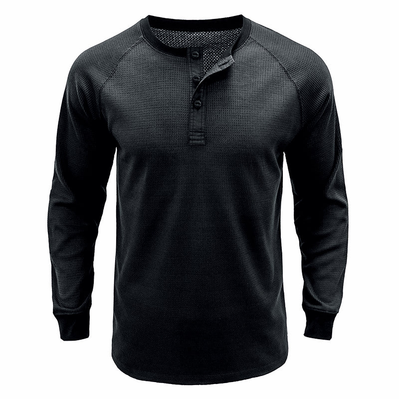 Men's Classi Henley T Shirts Waffle Long Sleeve in Black