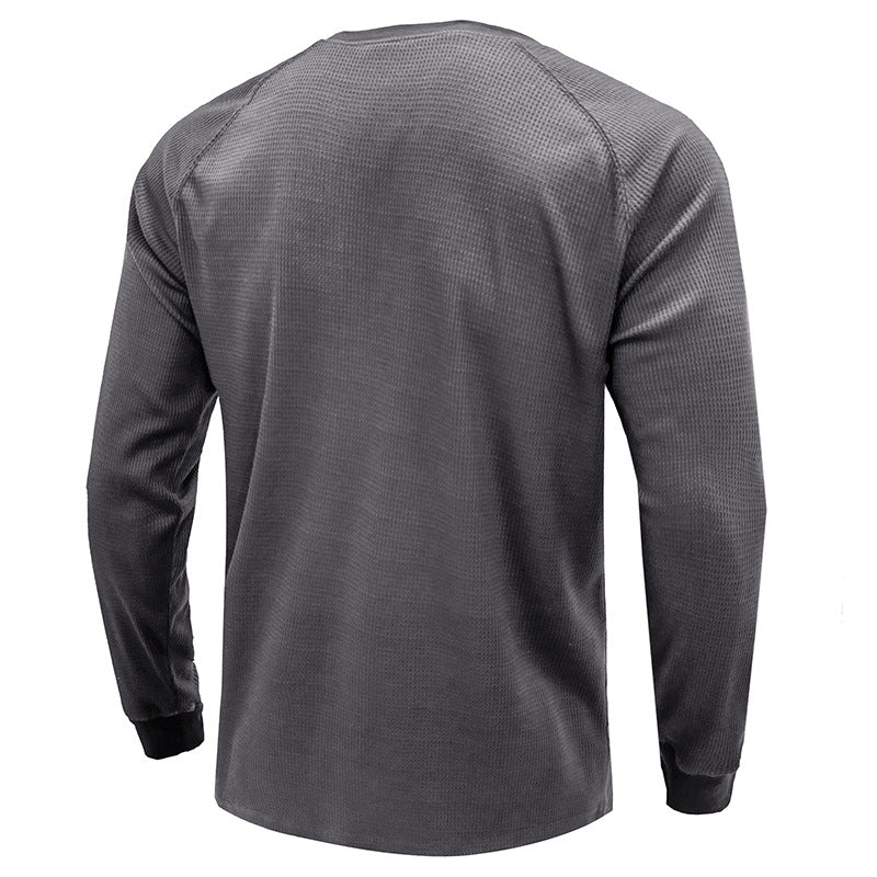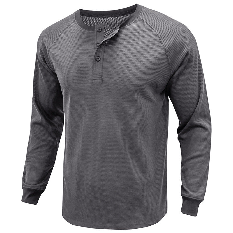 Men's Classi Henley T Shirts Waffle Long Sleeve in Gray