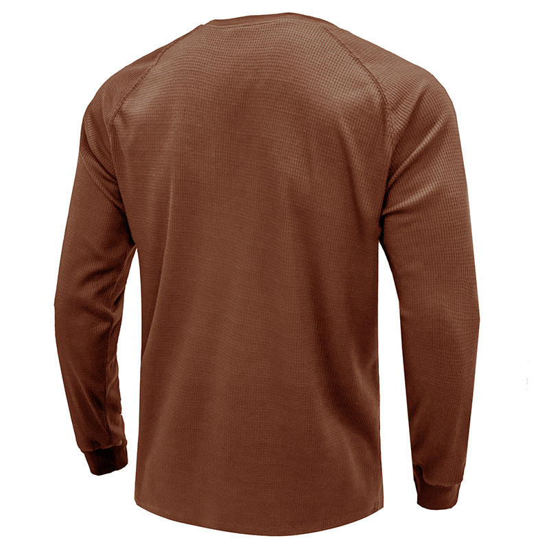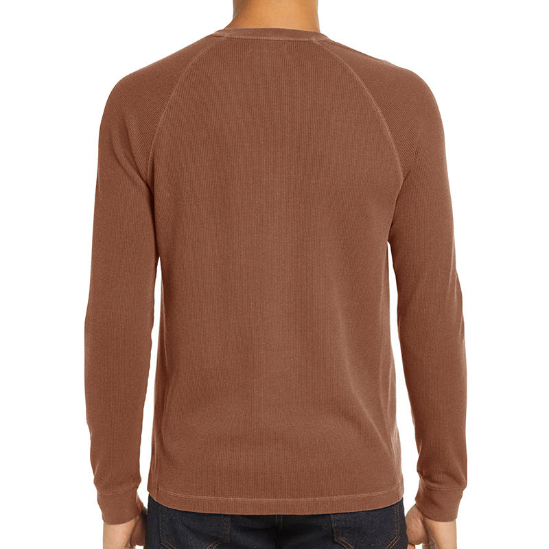 Men's Classi Henley T Shirts Waffle Long Sleeve in Kakhi