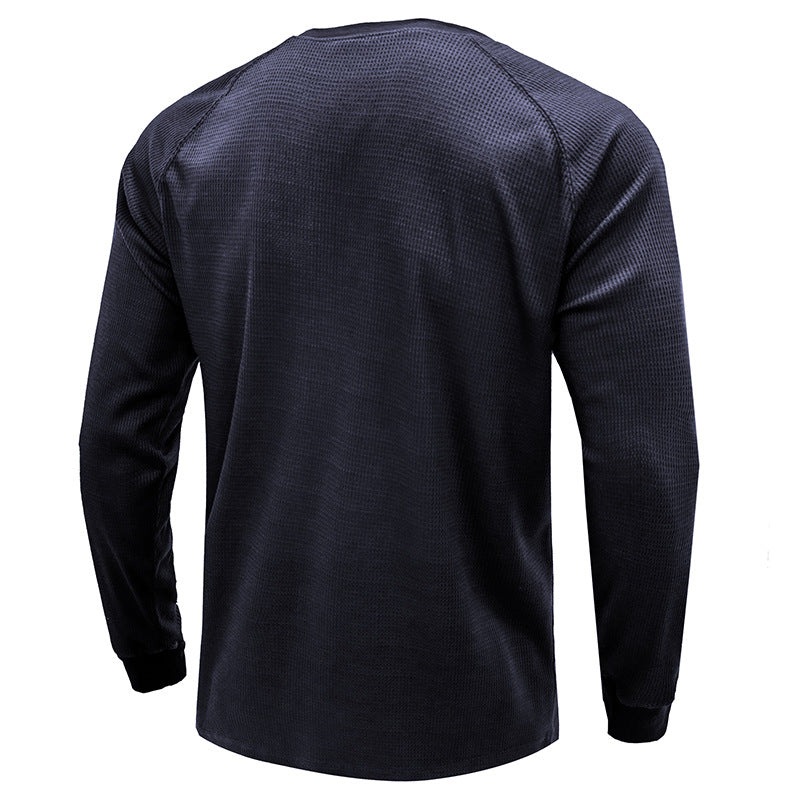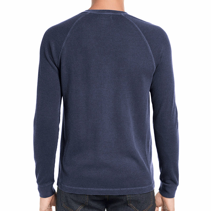 Men's Classi Henley T Shirts Waffle Long Sleeve in Navy Blue