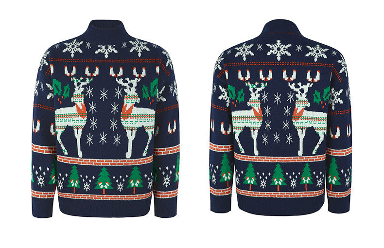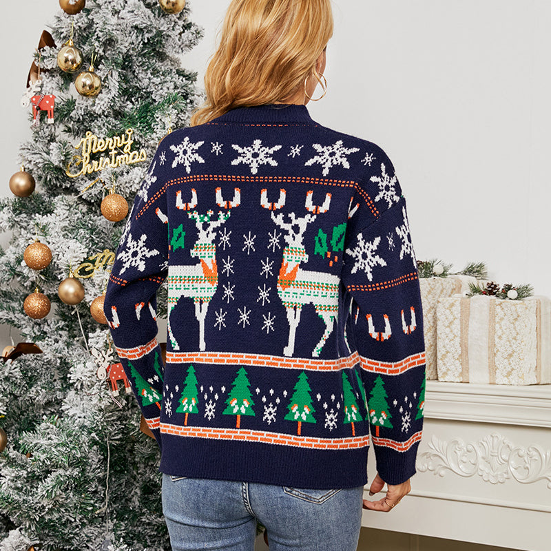 Ugly Christmas Sweater Long Sleeve Pullover Christmas Tree Print in Navy