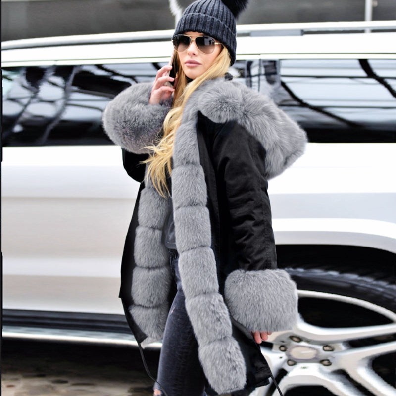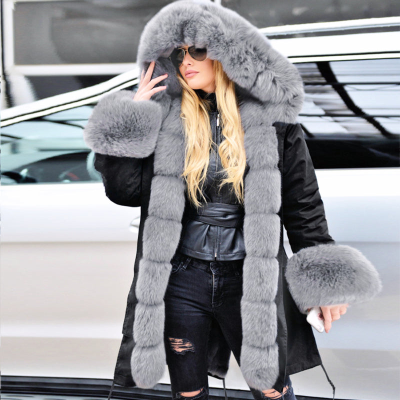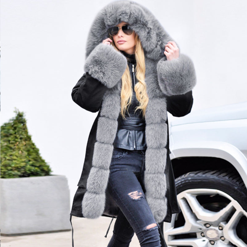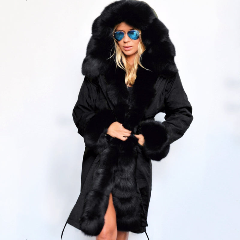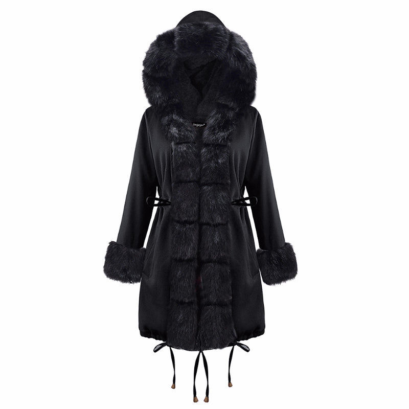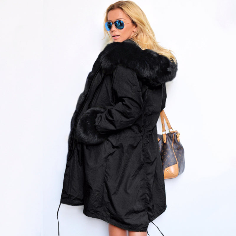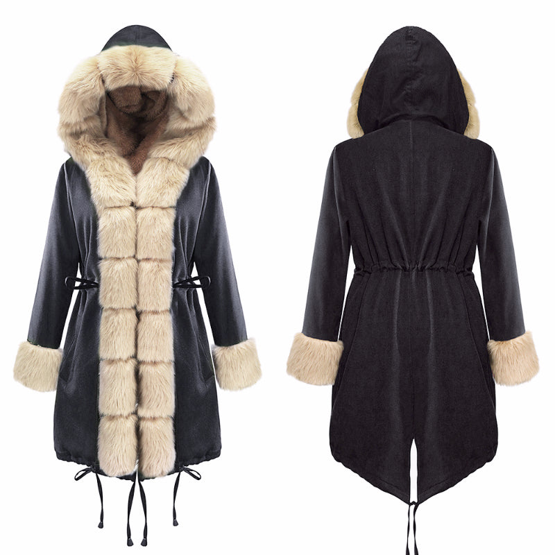 The women's parka jacket is a must need for those cold winter days! The long parka features adjustable outer drawstring waist cord for flattering fit and fur trimmed on collar and hood. Sharpa Lined provodes extra warmth . Soft and smooth fur collar. Fur cuff on sleeve.